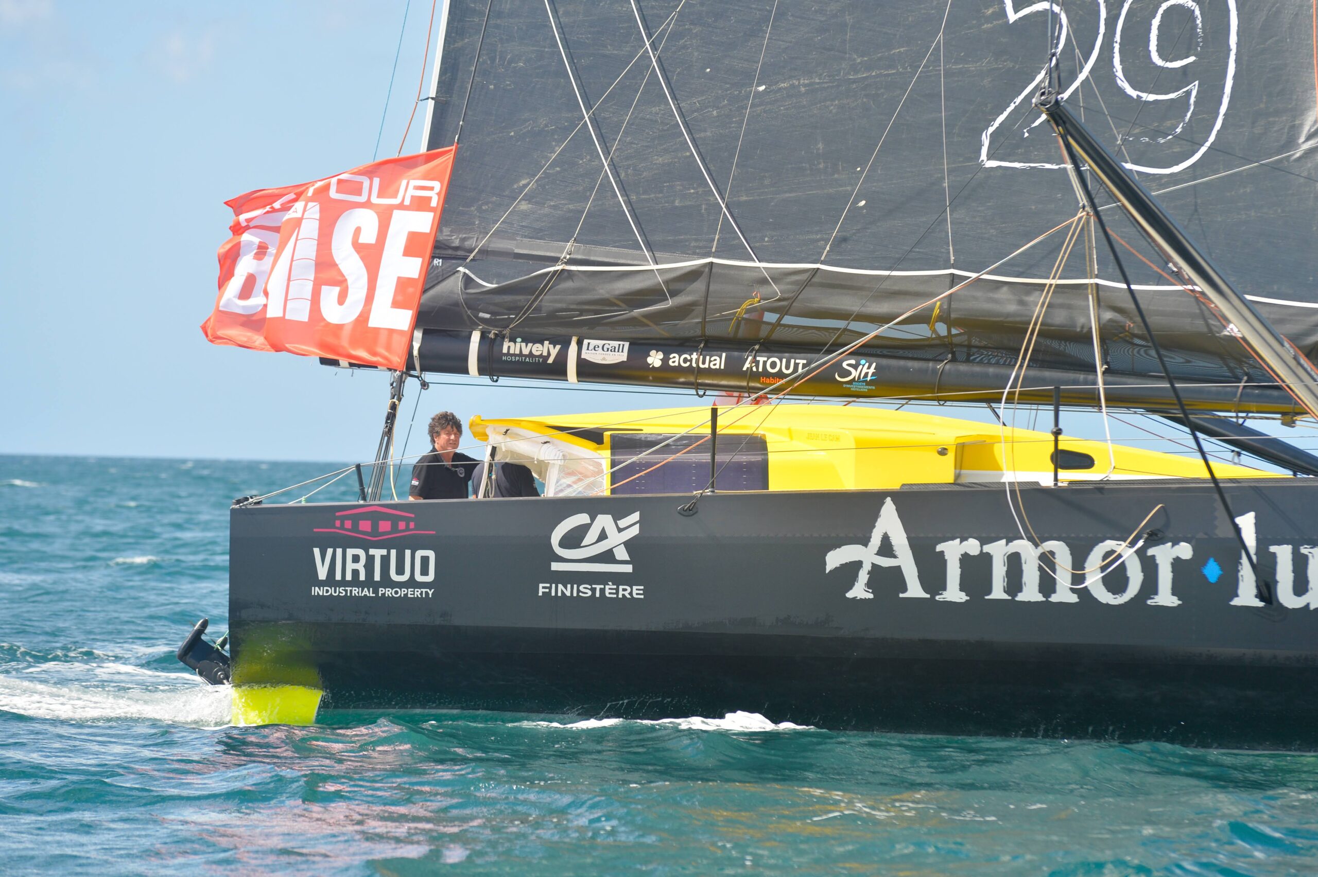 en présence de Jean Le Cam skipper professionnel, François Cuillandre Président de Brest Métropole et Maël de Calan Président du conseil départemental du Finistère.
